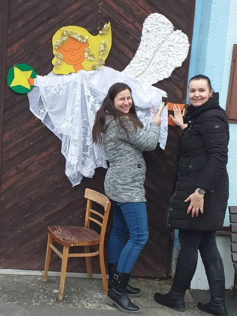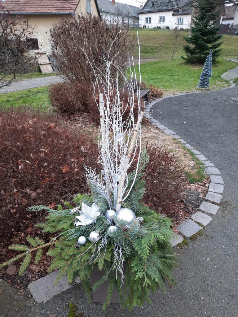 Adventní čas v Baníně zpříjemňuje vánoční výzdoba. Za její zajištění děkujeme členkám kulturního výboru. Za výrobu dřevěných srneček děkujeme panu Michalu Slezákovi.
