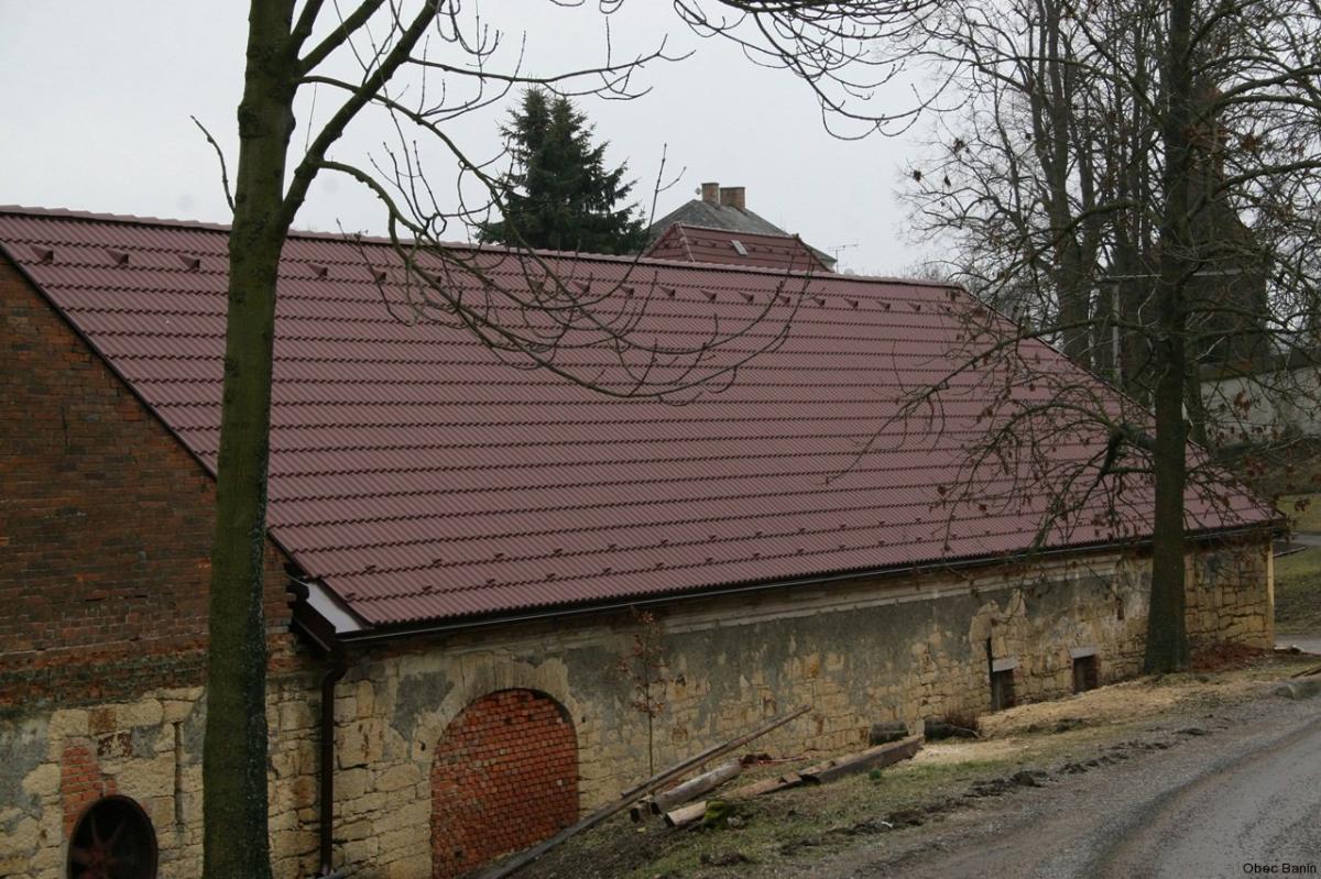 V roce 2010 obec Banín zažádala o dotaci na opravu střechy Kulturního domu Rychta. V roce 2011 naší obci byla z fondu Program rozvoje venkova přidělena dotace ve výši 100.000,- Kč. Velkou otázkou bylo, zda dotaci přijmout a proinvestovat tuto částku i s tím že náklady budou mnohonásobně větší. Zastupitelstvo obce rozhodlo tuto rekonstrukci provést, ale po odkrytí stávající krytiny bylo zjištěno, že celá vazba je špatná a musí se vyměnit. Proto náklady vzrostly o novou vazbu, která stála celkem 260.000,- Kč. Celková oprava zadní části střechy, tedy nad tělocvičnou činila 780.000,- Kč. V současné době už do tělocvičny nezatká a postupem času se tyto nevyužité prostory mohou zrekonstruovat a opět používat.